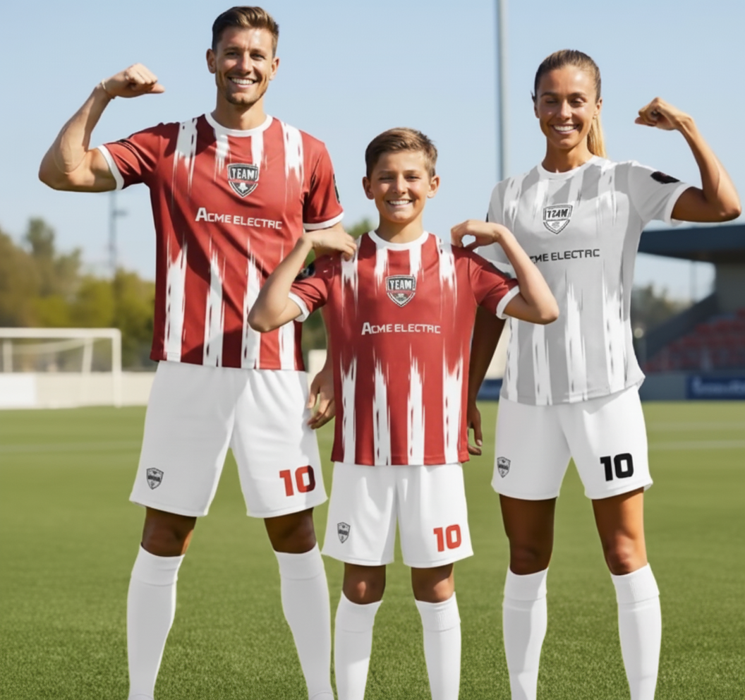 Jerseys & Uniforms Custom dye sublimated jerseys & uniformsFor Leagues, Teams, and now available by the piece. quote request design your custom jersey now 100% made in the usa – Better quality, speed, and value dye sublimation for professional performance and looks! Rendition Away Graphic Soccer Jersey and Short $27.00 Read more Rendition Home Graphic Soccer Jersey and Short $27.00 Read more